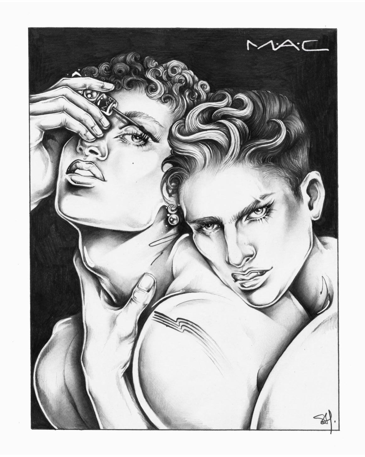 Fashion illustration inspired by men using the MacStack Elevated Mascara by Mac.