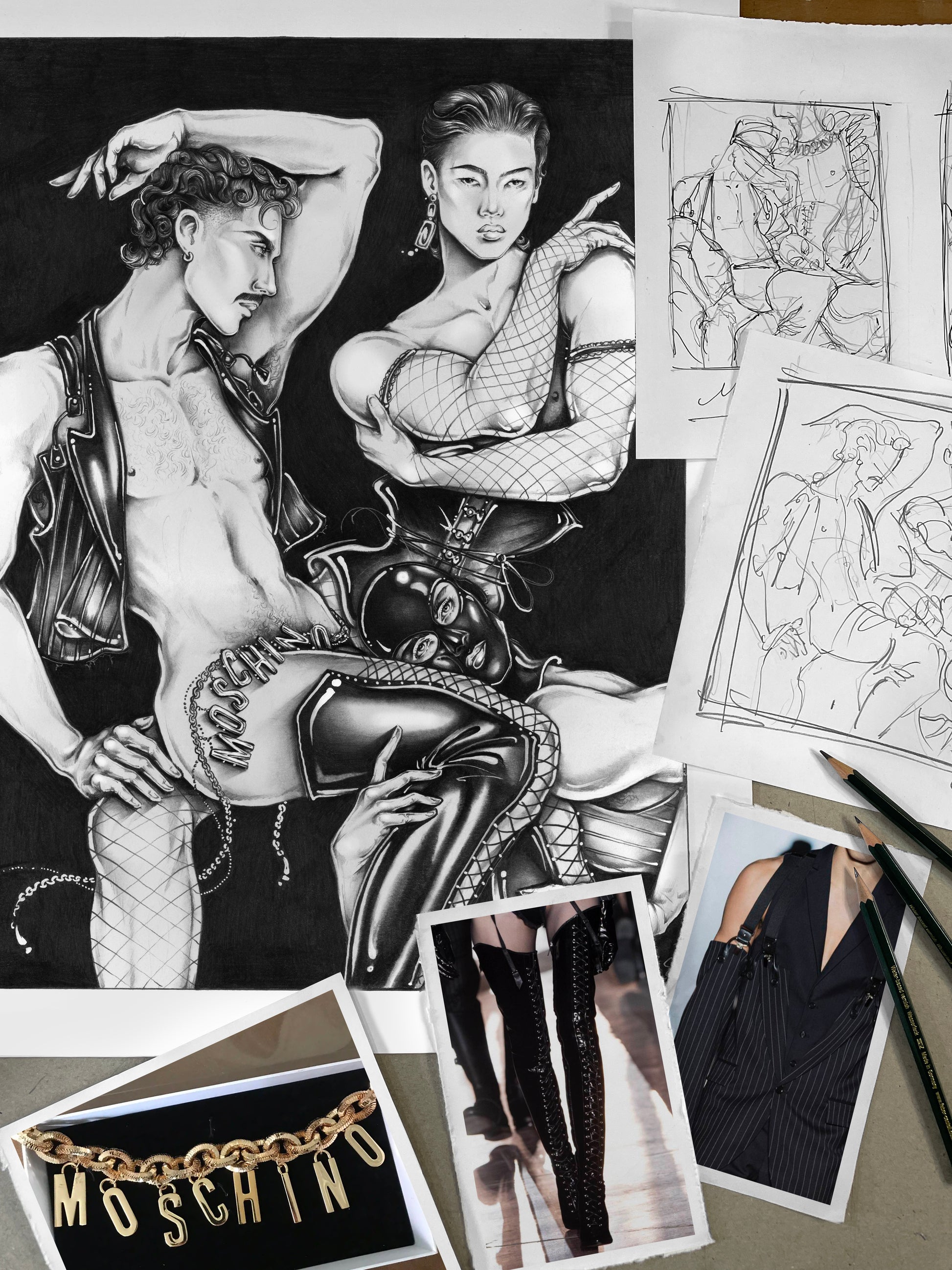 The second piece from my pair of illustrations inspired by the Moschino FW18 Menswear collection designed by Jeremy Scott.